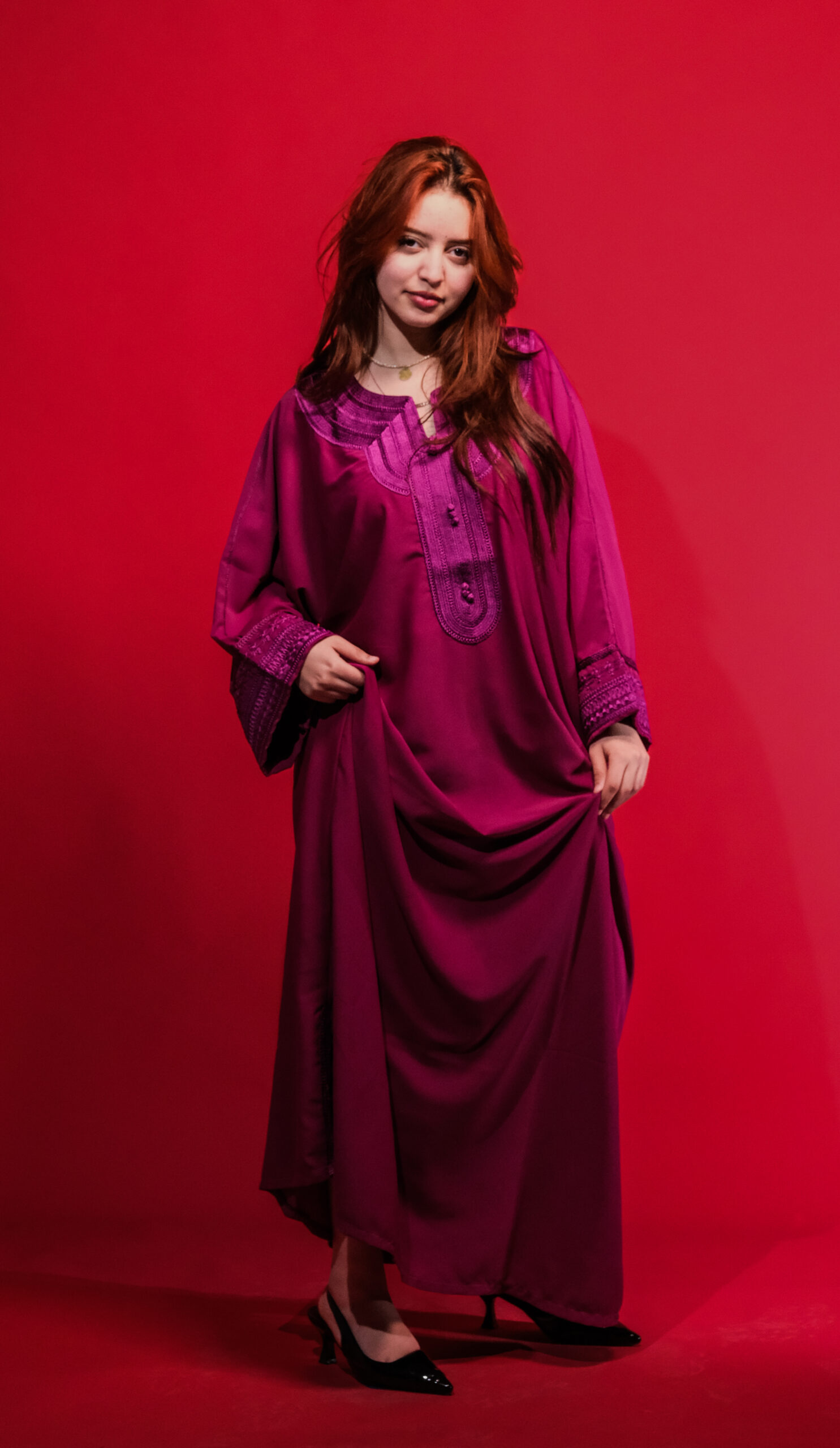 مصممة من أجود أنواع ثوب الكريب الكوري الذي يتميز بنعومته الفائقة وانسيابيته على الجسم، مما يضمن لكِ راحة تامة وأناقة لا تضاهى